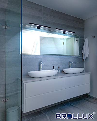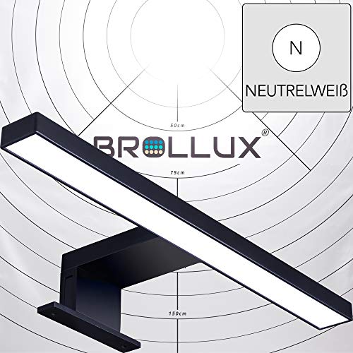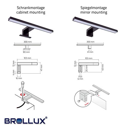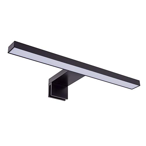Specification: Led-spiegellamp met stekker, badkamerlamp, make-uplamp, zwart, mat, wandlamp, opbouwlamp, kastverlichting, klemlamp, neutraal wit, 230 V, 220 lm, IP44, 300 mm