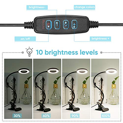 [3 kleurtemperatuur en 10 helderheidsniveaus] De leeslamp biedt 3 kleurtemperaturen (wit licht, natuurlijk licht en warm licht). Elke kleurtemperatuur beschikt over 10 helderheidsniveaus. Verschillende helderheidsniveaus instellen om een aangename en perfecte lichtsfeer te bereiken