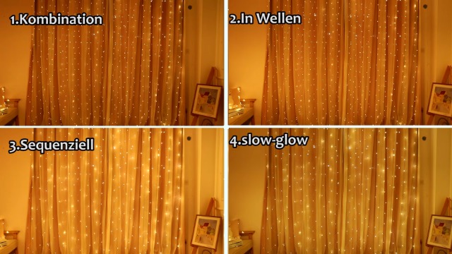 [8 Beleuchtungsmodi & Timer-Funktion]: Sie können die Fernbedienung einfach verwenden, um die Lichter ein- und auszuschalten, die Helligkeit einzustellen und den Timer automatisch ein- und auszuschalten, mit 8 wunderschönen Beleuchtungsmodi-Funktionen, um zwischen Kombination zu wechseln, Glühwürmchen blinken, winken, verblassen, jagen / blinken, langsam verblassen, blinken, blinken, Dauerlicht. Schafft eine romantische, weiche, gemütliche Atmosphäre in jeder Situation.