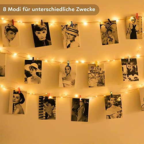 Variable Modi: 8 Modi bieten die perfekte Lösung für Ihre dekorativen Beleuchtungsbedürfnisse. Egal, ob Sie sie in einer Vase, einer Laterne oder auf Ihrer Fotowand anbringen, Sie finden immer den perfekt passenden Modus. Dank der Speicherfunktion müssen Sie sich nicht darum kümmern, den Modus neu einzustellen, da er gleich bleibt, bis die Batterie leer ist.