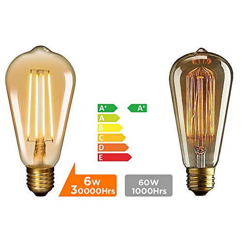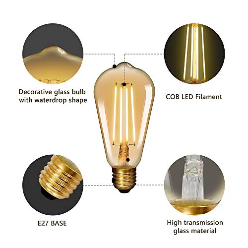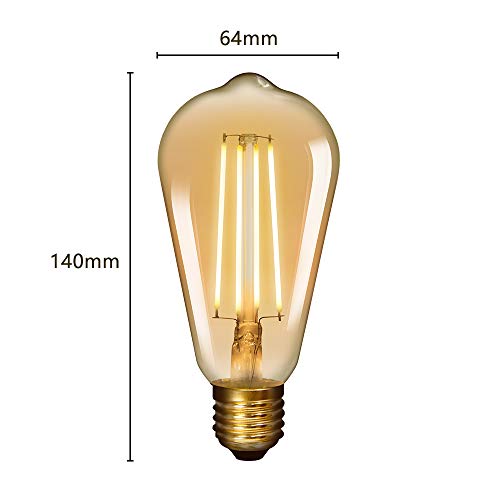 Specification: Enuotek Vintage ST64 6W Edison LED gloeilamp, E27 retro draadlamp, lamp, COB LED, lange draad en retro glazen lampenkap, warm wit, 2400 K, 1 stuks