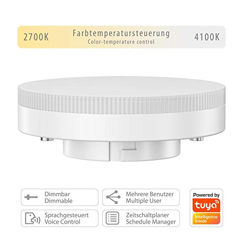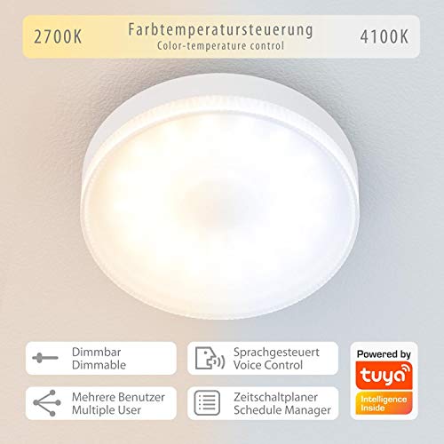 Specification: ledscom.de GX53 LED-lampen, compatibel met Alexa, WLAN, smart, warm wit – wit (2600-4000K), 4,8W, 531lm, 107°, Smart Home, WLAN, Alexa, mat, 2 stuks