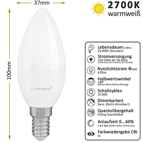 ✅ Hoogwaardige Lumaro LED-lamp E14 5 W, voor knippervrij, aangenaam warm licht met een laag stroomverbruik.