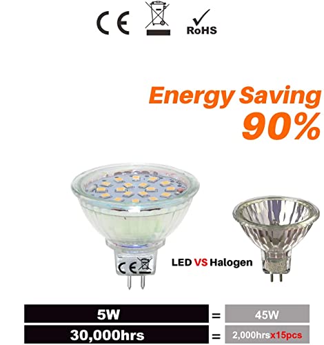 Helder licht, laag energieverbruik: met een vermogen van 5 W heeft deze MR16 GU5.3 LED-lamp 450 lumen helder licht en kan als vervanging voor een 45 50 W halogeenlamp.