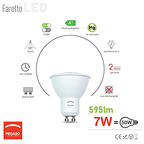Pegaso GU10 LED-Leuchtmittel, GU10, Durchmesser 50 x 55 cm (4000 K, 7 W, 595 Lumen), 10 Stück