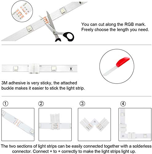 【Verbeterde koperen plaat en eenvoudige installatie】 ① Duurzame en snijbare ledstrips van duurzame dubbellaagse koperplaat (niet waterdicht). ② Heldere led-kralen met een lange levensduur van meer dan 50.000 uur. ③ Eenvoudige installatie dan bij soortgelijke producten, slechts een eenvoudige verbinding. Installeer het in enkele seconden zelf. Zelfklevende achterkant met plakband voor veilig en eenvoudig aanbrengen, geen zorgen over vallen.