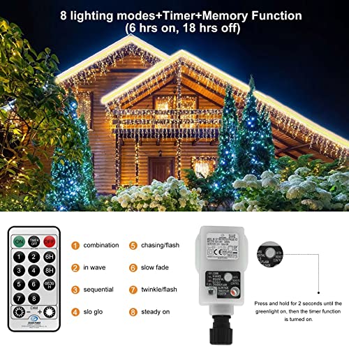 Specification: 20 m 540 LEDs ijsregen lichtketting buiten Kerstmis ijspegels lichtketting lichtgordijn met 108 druppels, indoor kerst vakantie bruiloft decoraties, warm wit