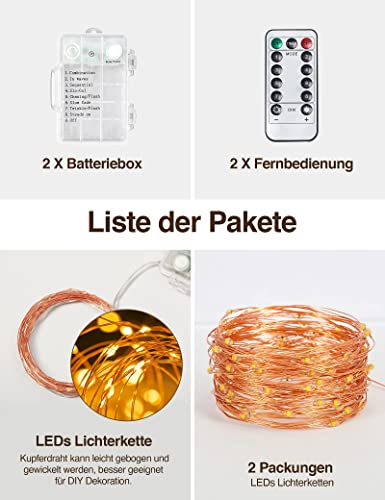 Set van 2 50 led-lichtsnoer: elke decoratieve lichtketting is voorzien van een 6 m vormbare koperdraad en lichtgevende mini-leds met 50 stuks. Met hoogwaardige LED-bubs en koperdraad is het gebruik eenvoudig en veilig. De kleine lichtkettingen van FilFom zullen je fascineren in de nieuwe lichtwereld.