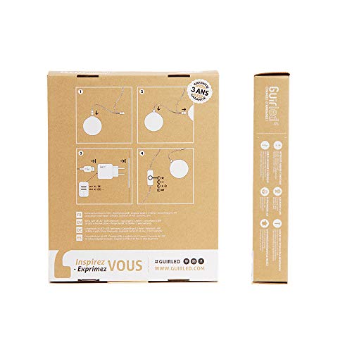 Ontdek onze nieuwe reeks USB-lichtsnoeren voor de decoratie van binnenruimtes en een warme sfeer. Laat u overtuigen door de beschikbare modellen: Tagada, Forest, Avatar, Purple, Flocon, Cocktail, Liverty, Emeraude, Cherry, Lady, Blueberry, Azur en Las Vegas: vind je de passende modellen. De lichtkettingen maken gebruik van led-technologie voor een zeer laag stroomverbruik en een aangename kleurweergave. Onze slingers zijn ontworpen en geassembleerd in Frankrijk. Inhoud levering: – lichtsnoer met 16 leds, zeer laag stroomverbruik (2 W) met 5 V USB-poort en 4 posities. – Netlader 230 V op dual USB 5 V 2,1 A max. Er kunnen twee lampen met slechts één oplader worden gebruikt. – 16 stabiele ballen met gevlochten katoen met plug&play-opzetstuk zonder schadelijke chemicaliën. – 2 jaar garantie in Europa met klantenservice in Frankrijk. Een probleem? Binnen 24 uur antwoord. Normen: – CE-certificering door een Frans laboratorium (Emitech) – elektrische veiligheidsnormen voor lichtkettingen EN 60598-2-20: 2010 Guirled is een geregistreerd handelsmerk in het register van INPI nr. 4316678.