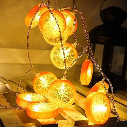 Kunstmatige oranje citroenschijven, lichtketting, LED, simulatie, fruitslinger, nachtlampje, werkt op batterijen, decoratie voor terras, omheining, balkon, camping