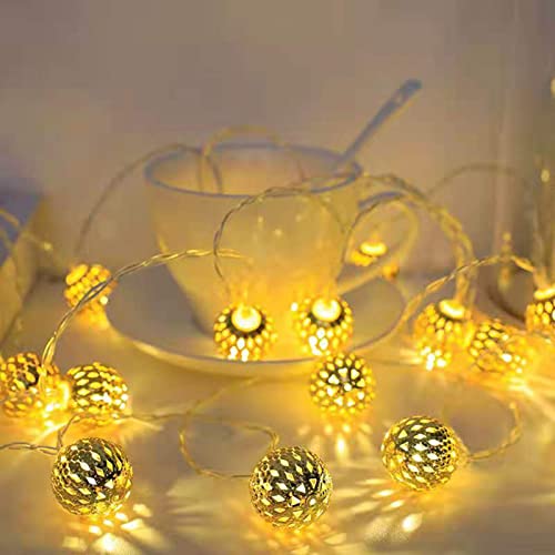 Marokkaanse led-lichtsnoer, 3 meter lang met /20 warmwitte led-lichtkettingen voor bruiloften, familie-kerstdecoratie, bolvormige oosterse gouden lichtketting, (kleur goud)