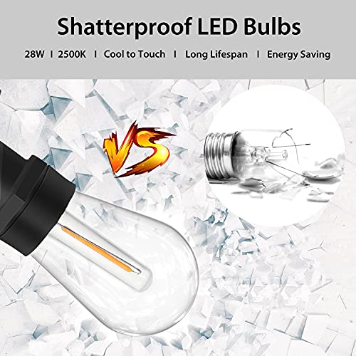 【Eenvoudige installatie】: de afstand tussen de stekker en de eerste gloeilamp bedraagt 1,5 meter en is voor een comfortabel gebruik gemakkelijk te bereiken. Bovendien hebben de speciaal ontwikkelde ophanghaken met dubbele ring een beter draagvermogen. Hang de lamp eenvoudig aan de muur, een hek, een leuning, draden of vrijstaande masten om de gewenste gelegenheden te verlichten.